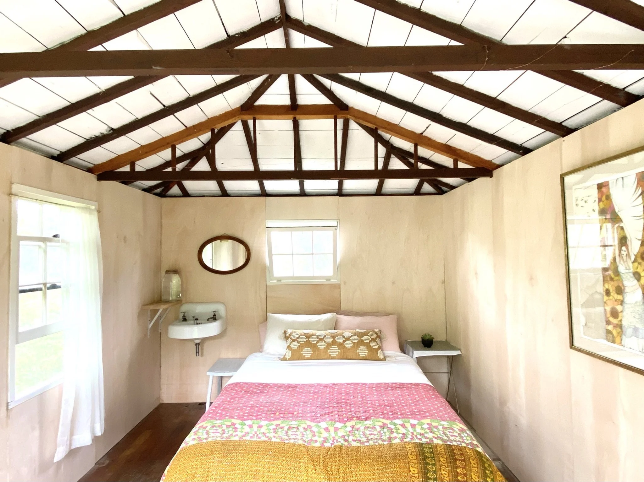 The Guest House is the most spacious and traditional of the 8 accommodations at Gatherwild Ranch. A renovated offset of the 1850's farmhouse, you will get the best of both modern convenience - like electricity, AC, in-house coffee maker and reliable Wi-Fi, yet have the outdoor experience right out of your doorway. A small sun porch is great for weekend coffee or remote working, and the nighttime stargazing here is spectacular.